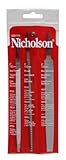 Nicholson 3 piece file set designed for both home and professional use. Set contains a file for every purpose. Files included are: 6 inch slim taper file with handle, 6 inch round file with handle and 6 inch mill bastard file with handle.