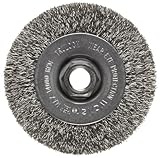 These wheels are highly flexible and are ideal for light to medium duty surface preparation on irregular surfaces. Weiler's solid ring construction ensures smooth brushing action and long brush life. Our crimped wire wheels are densely filled with high quality fill materials including heat-treated steel, Type 302 stainless steel, brass, or bronze wire.