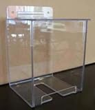 Dispenser provides a neat and sanitary method for dispensing bouffants, koronets, shoe covers, paper hats and more. 6 inches high. (Add an inch for hang tab in back.) On inside 4 deep x 4-1/2 wide on outside 4-5/16 deep x 4-13/16 wide.