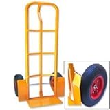 This heavy duty Hand Truck with 13" pneumatic wheels is built to last and ideal for heavy duty application. The hand truck features a 6" toe plate, 13" X 4" wheels, and carries up to 600 lbs. Convenient p-handle allows for easy single hand operation. Wheel fenders protects the load from wheel marks or dirt. Steel construction with high quality finish.