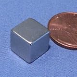These neodymium magnets are made of grade N42 high quality neodymium iron boron magnetic material. The dimension of the magnet is 3/8 inch (0.375) cube with the N and S poles on the flat surfaces. Thsese neodymium magnets are coated with nickel-copper-nickel for a shiny corrosion resistant finish. The individual pulling force is approximately 13 lbs. The tolerance of the dimensions is +/- 0.01mm = +/-0.004".