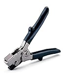 Slide adjustment for throat depth allows settings from 1/4" to 5/8" (6 to 16 mm) depth. Also used to crimp end caps on gutter. Nickel plate and black oxide finish. Green grips. Formed metal cutting jaws.