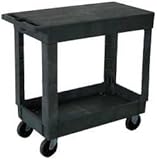 Service Cart, Load Capacity 500 lb., Plastic Construction, Finish Smooth, Color Charcoal, Overall Length 34-1/2 In., Overall Width 17-1/2 In., Overall Height 32-3/4 In., Number of Shelves 2, Caster Size 5 In., Caster Type 2 Rigid, 2 Swivel, Caster Material Non-Marking Rubber, Capacity per Shelf 250 lb., Distance Between Shelves 19 In., Shelf Length 30 In., Shelf Width 17-1/2 In., Lip Height 2-3/4 In., Ergonomic Handle, Number of Compartments 2, Tray Capacity N/A, Standards N/A, Includes N/A