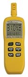 The DTH31 Digital Psychrometer is an advanced handheld humidity and temperature meter. Its triple display shows three parameter readings simultaneously. It has everything you need to charge an air-conditioning system and determine heating, cooling, and ventilation needs. It gives you incredibly fast and accurate wet bulb, dry bulb, and dew point measurements. Features ? Ambient temperature (T1) ? External temperature w/probe (T2) ? RH humidity ? Dew point ? Wet bulb ? T1 - T2 ? T2 - Dew point (check difference of dew point to surface) ? Display resolution 0.1 �C / �F ? Protective sensor cap ? Sensor: Electronic capacitance polymer film ? Condensation will not affect accuracy ? Hold ? MIN/MAX ? �C or �F switchable ? Low battery indicator ? Self-calibration ? Pocket size design ? Reset ? Auto off with selectable delay ? Auto off by-pass ? One year limited warranty