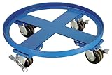 Transport 55-gallon drums with the heavy-duty drum dolly with a capacity of 2,000 lbs this dolly will transport your heavier drums from location to location. (4) 4" x 2" locking swivel phenolic casters with brakes standard.