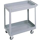 30in.L x 16in.W x 32in.H cart is versatile. Use it in the warehouse, the garage - anyplace a rugged cart is needed. Two 3 5/8in. deep trays hold the load securely. Heavy duty all-steel cart has a tough, chip-resistant enamel finish. Rolls easily on large 4in. wheels. Easy to assemble. Material Type: Steel, Total Capacity (lbs.): 600, Shelves (qty.): 2, Shelf Capacity (lbs.): 300, Shelf Clearance (in.): 23 1/2, Dimensions W x D x H (in.): 16 x 30 x 32, Wheel Type: 2 swivel, 2 fixed Non marring rubber casters, Wheel Size (in.): 4, Assembly Required: Yes