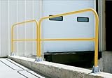 Protect people from uneven walkways and mezzanine drop off's. These durable railings are made of schedule 40 pipe (1-5/8" outside diameter). Handrails are 42" high with a 21" mid-rail. Mounting options include socket sleeves, cast steel base, barricade base, or cast steel sockets for convenient handrail removal. The cast steel sockets accept wood 2" x 4" or 2" x 6" when toe boards are required. The cast steel base has two lag down holes for permanently mounting the railing. There are two open cavities to allow for 2" x 4" or 2" x 5" toe boards. Steel railing features powder coat safety yellow finish.