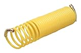 MIT 25' X 1/4" RECOIL AIR HOSE features: Self-Storing Air Hose Quickly Snaps Back into Coiled Shape, Nylon Construction is Oil-Proof and Abrasion Resistant, 1/4" NPT Male End Fittings with Spring, Brass End Fittings are Corrosion Resistant, Hose Handles up to 200 psi, High Visibility Yellow Color Makes Hose Easy to Locate