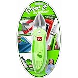 This wonderful new household tool called the "Open it!" has previously been seen on television. It is an incredibly useful 4 in 1 tool for cutting hard plastic clamshells, blisters, and cardboard, snipping toy packaging, twist ties and straps or slicing boxes, CD's, DVD's, and plastic wrap. You can even use the built in screw driver to open battery compartments or the bottle openers to pop open a drink! Designed with the collaboration of female consumers all over the country, this is one of the most multi-functional tools on the market today!